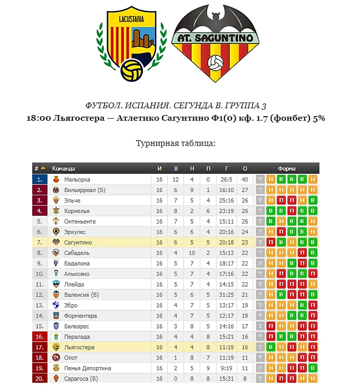 Льягостера — Атлетико Сагунтино. Прогноз с аргументацией на матч Чемпионата Испании