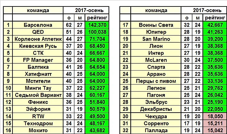 Лучшая команда тура по сумме УВ в целом: Корлеоне Атлетик (19 вариантов)