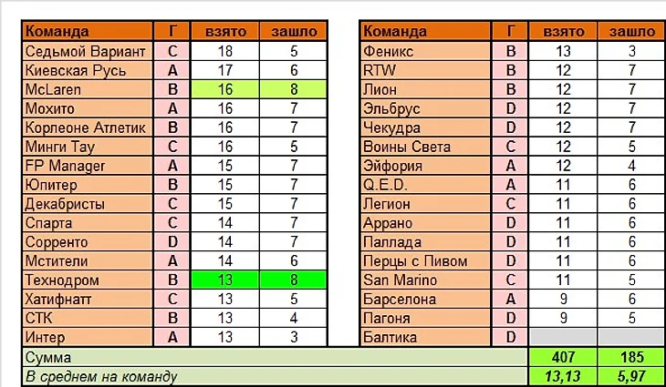 Лучшая команда тура по сумме УВ в целом: Эльбрус (26 вариантов)