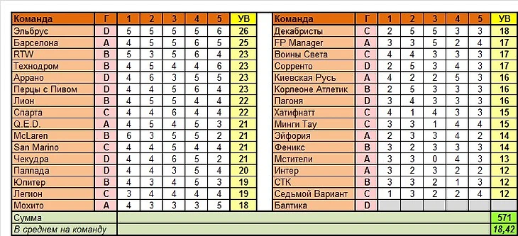 Лучшие игроки тура по УВ: DarkSiders(Эльбрус), Вова Поторась (Перцы с Пивом), Бешеный Греймон (Чекудра), vitaliy208621 (Аррано), starryi (Спарта), virtus80 (McLaren), armen96 (RTW), Shred (Технодром), selines88 (Барселона) – по 6 вариантов