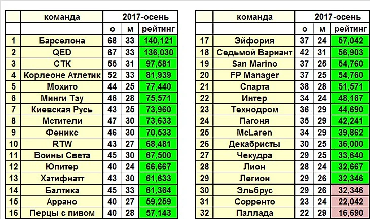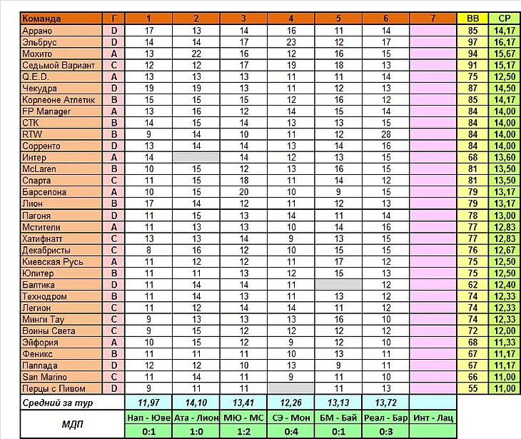 Лучшая команда тура по сумме УВ в целом: Перцы с Пивом (16 вариантов, раскладка 3-3-4-3-3)