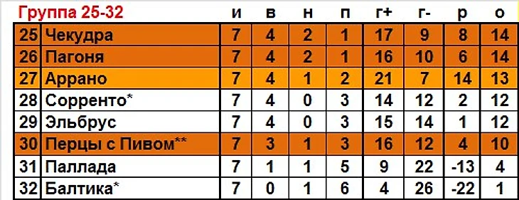 1. Sasha Kovalev (1-4-7-11-15-29-34) - SPB-82 (1-7-11-15-29-35-39) 0:0 (2)