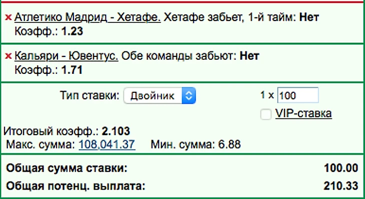 Испания и Италия / +2=0-0 / +200$