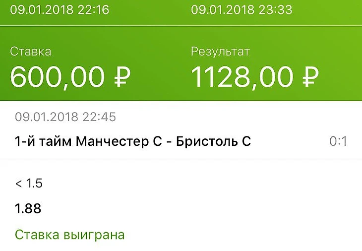 Манчестер Сити - Бристоль Сити первый тайм тотал <1,5 за 1,88 (Фонбет)
