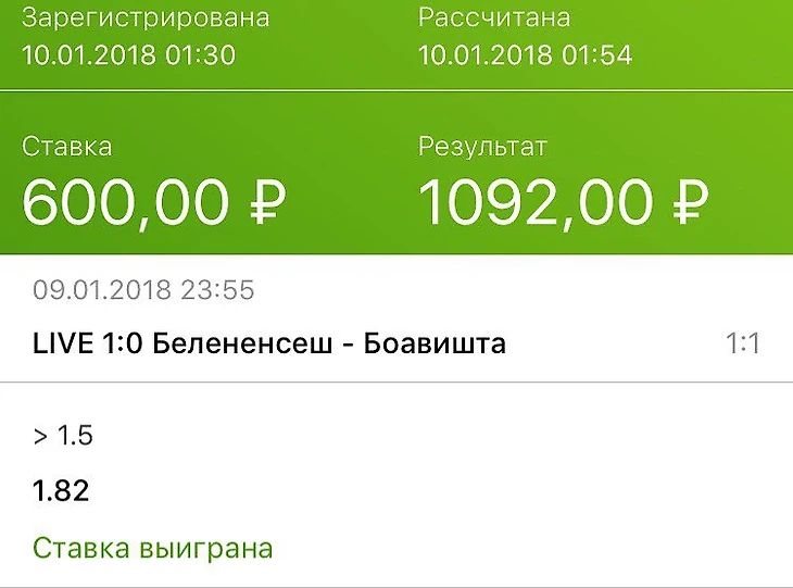 Белененсеш - Боавишта ТБ(1,5) за 1,82 (Фонбет)