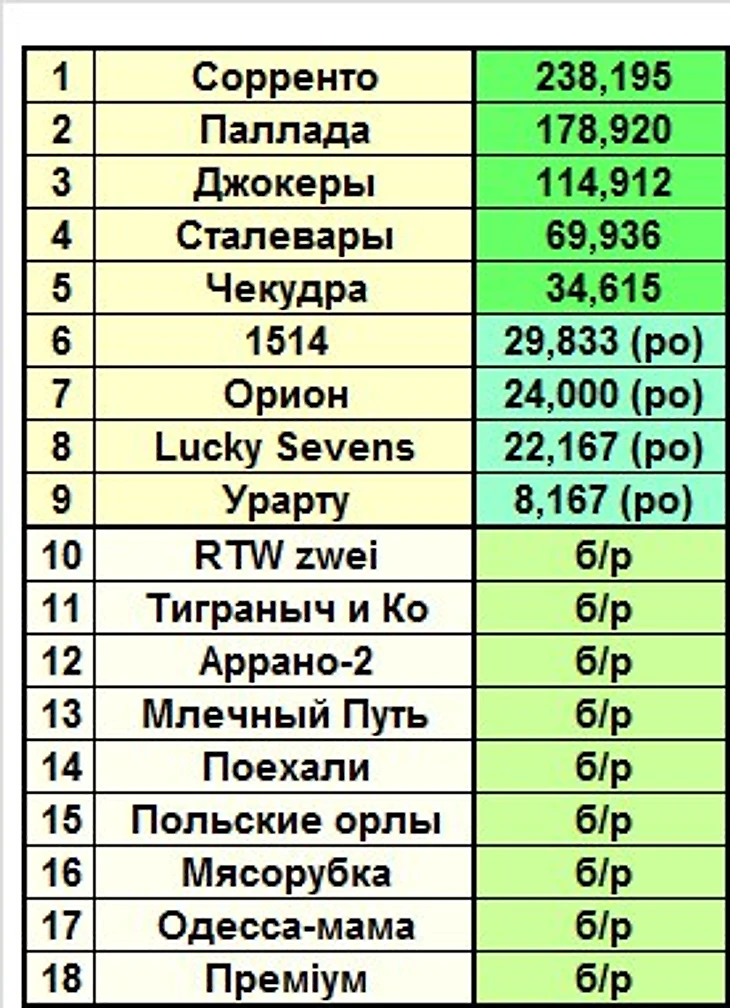 Для команд, не игравших в Лиге в последние 4 сезона, но принимавших участие в предыдущих квалифаях, был составлен свой рейтинг аналогично официальному.