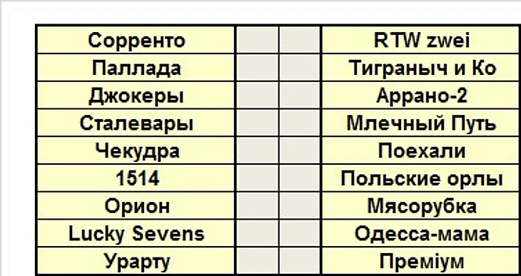 Значитца, так. Сейчас это делать уже поздно - команды типа заявились и готовы к старту. Но со следующего сезона (нравится вам всем это или нет - мне по фигу!!!) ВСЕ команды-претенденты, которые намерены пополнить нашу лигу, обязаны по названию соответствовать следующим критериям: