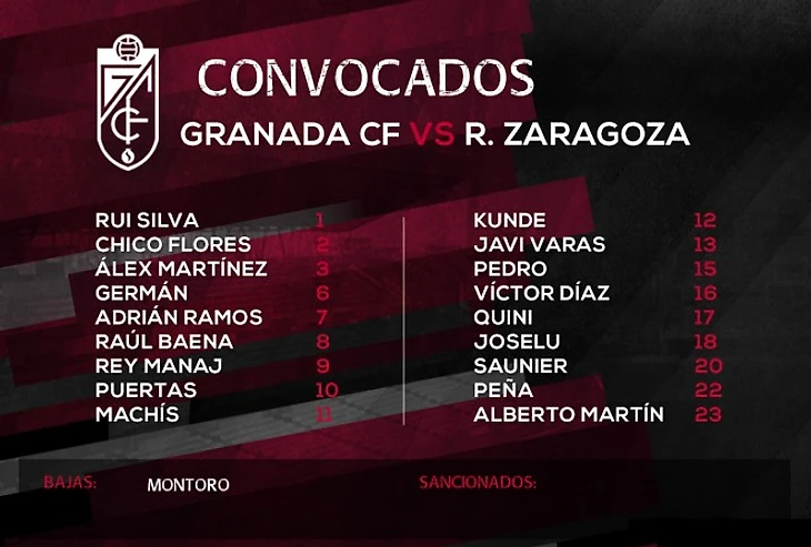 Вот заявка из 18 игроков на этот матч, которая была опубликована на официальном сайте Гранады: