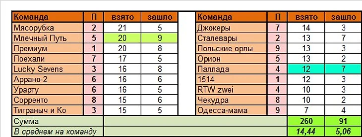 Лучшая команда тура по сумме УВ в целом: Млечный путь (23 варианта)