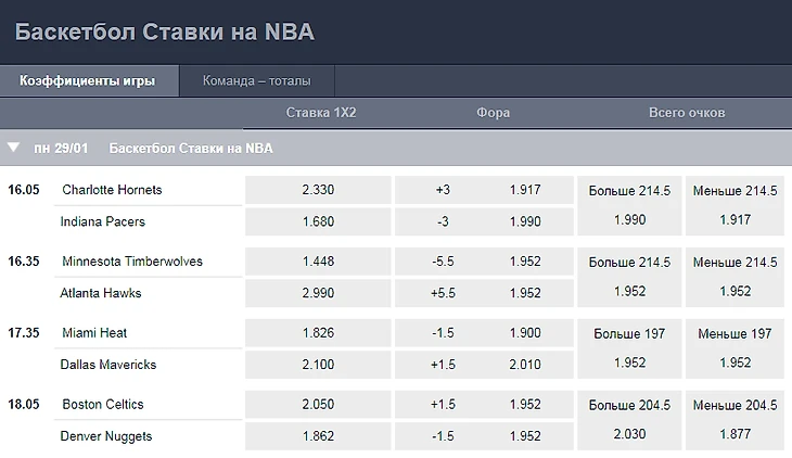 Что касается кадровых потерь, то здесь не ожидается ничего нового. У "Денвера" все так же не сыграет Пол Миллсэп, а у "Бостона" Гордон Хэйворд. Так что команды подходят к этой встрече в оптимальных составах. Так что давайте уже перейдем к нашим цифрам. Еще раз напоминаю: получаются эти цифры благодаря нашему алгоритму, технология которого держится в секрете.