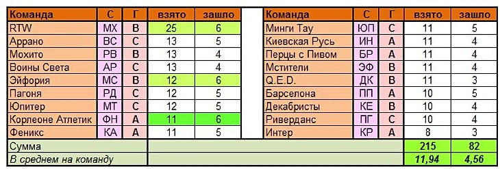 Лучшая команда тура по сумме УВ в целом: Корлеоне Атлетик (24 варианта)