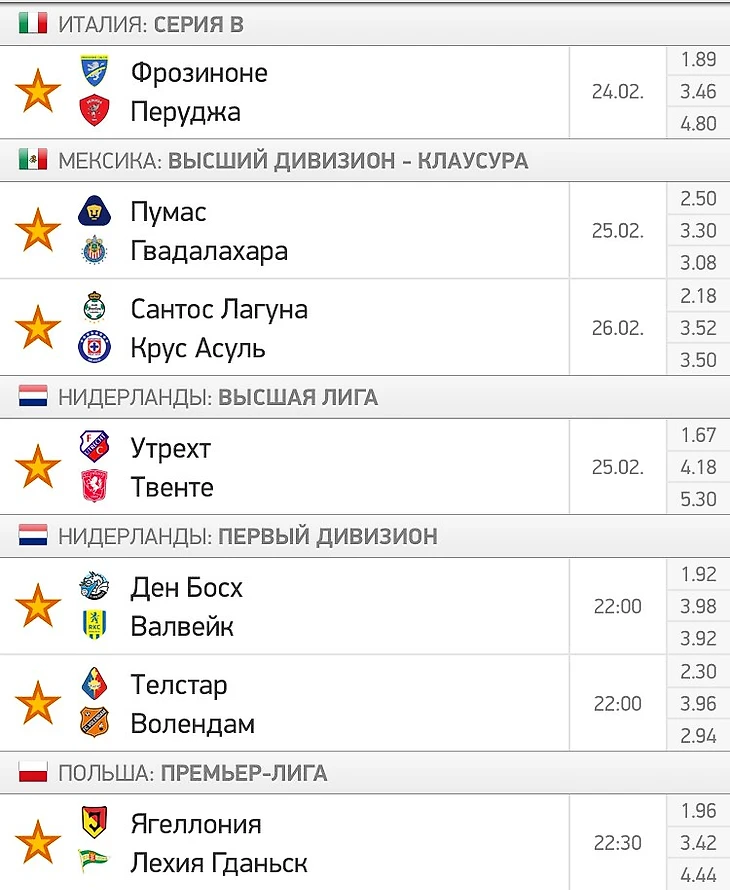 Стратегии. Непроигрыш домашней команды. 23.02.2018
