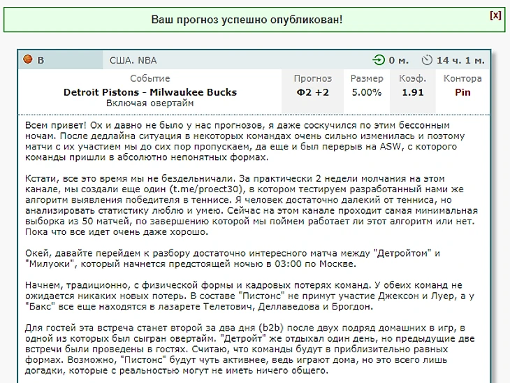 Не забывайте подписываться на наш телеграмм-канал с прогнозами: t.me/bitbasketball . Там много всего интересного. Удачи!