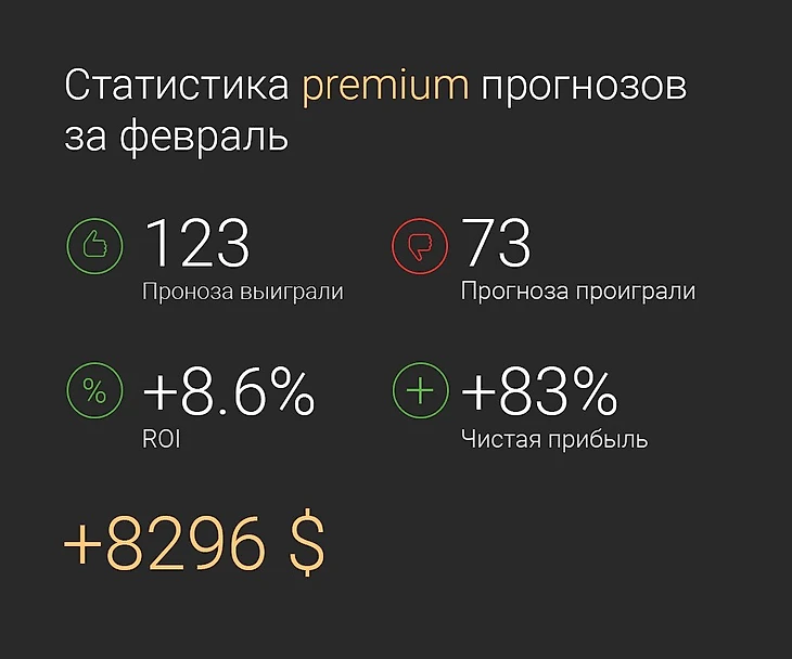 Результаты платных прогнозов за февраль.