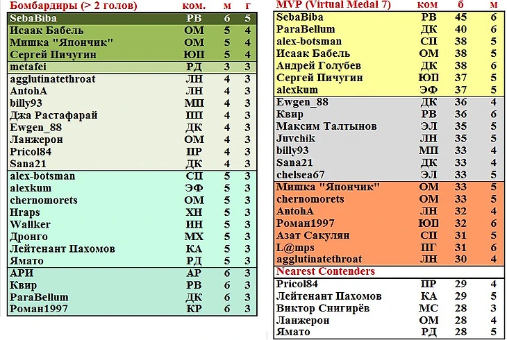 Лучшие игроки тура по УВ: Bohdan Beka (McLaren), Максим Талтынов (Эльбрус), AntohA (Лион), champion007 (Урарту) – по 5 вариантов