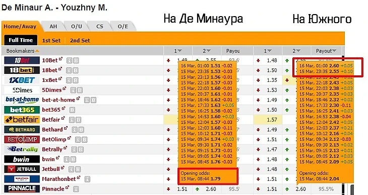 Де Минаур — Южный. 1,79 на Де Минаура, 2,60 на Южного