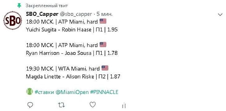 Обратно таки, букмекеры с огромной опаской выставили свои котировки на данный матч и уже с каждым часом коэф. на победу Riske Alison растет. Я не любитель совершать ставки "на свистке", а потому решил все оформить заранее. Проанализировав данный матч, я не вижу ни каких причин тому, что бы Riske Alison не смогла обыграть свою соперницу и пройти в следующий раунд состязаний.