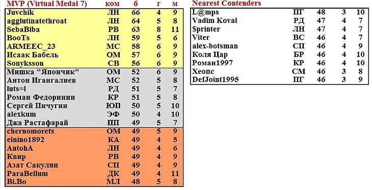 Замыкаем обзор лучшими прогнозистами по рейтингу mvp: