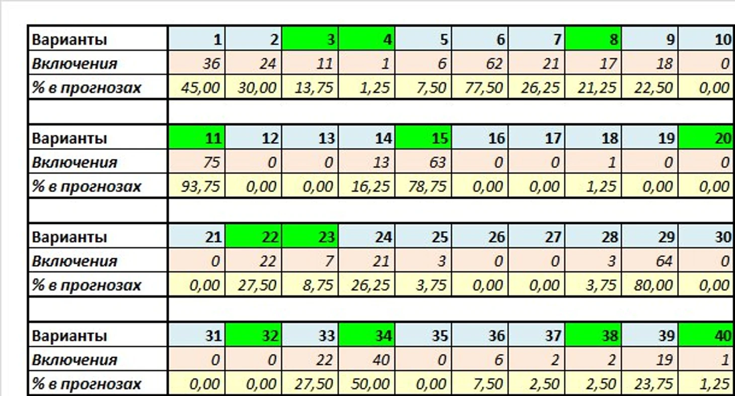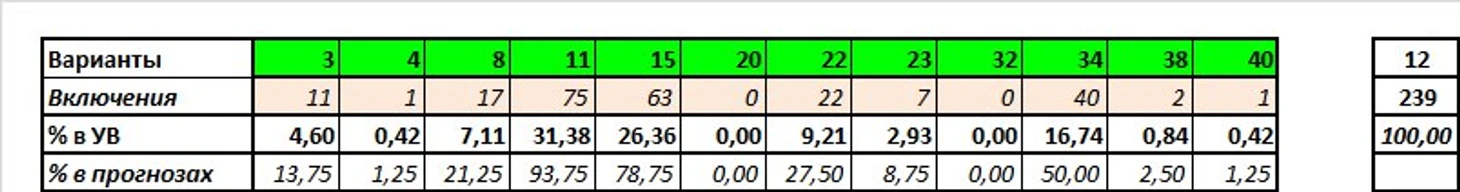 Сыграно вариантов: 12 (3-4-8-11-15-20-22-23-32-34-38-40)