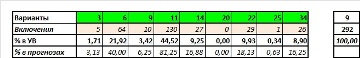 Сыграно вариантов: 9 (3-6-9-11-14-20-22-25-34)
