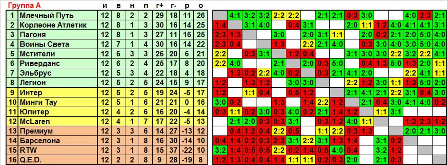 А широкая сводная таблица и списки лучших бомбардиров и игроков по mvp будут опубликованы в нарезочке, не пропустите.