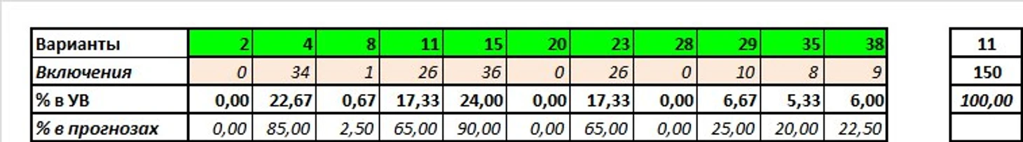 Сыграно вариантов: 11 (2-4-8-11-15-20-23-28-29-35-38)