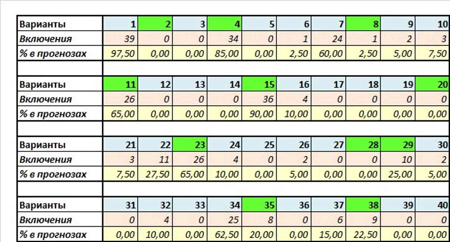 *Учтены только основные семёрки прогнозов