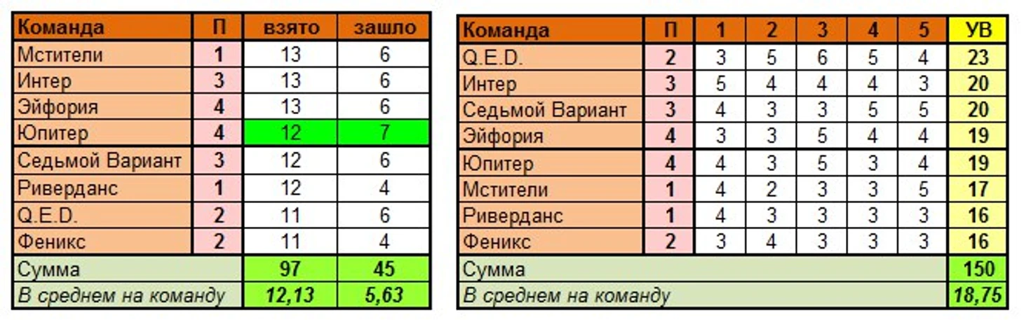 Лучшая команда тура по сумме УВ в целом: Q.E.D. (23 варианта)