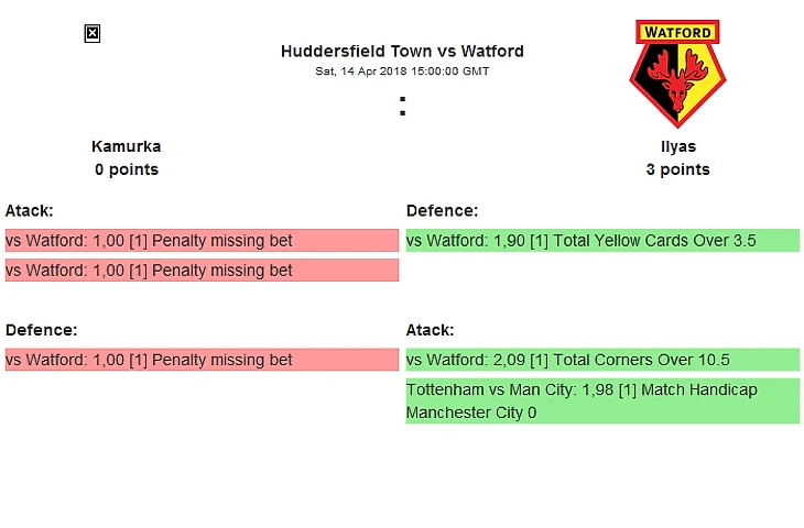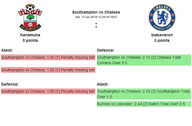 В третьих, на матч Бернли-Челси ставить нельзя, всем кроме Kamurka-2 и biakaveron, с них по 2 ставки, а также я перенесу их ставки с того перенесенного тура, которые они должны были выставить в системе и они должны высветится в этом матче на сайте. Если этих ставок не будет в системе, то считается как пропуск, я все объяснил ведь в том посту.