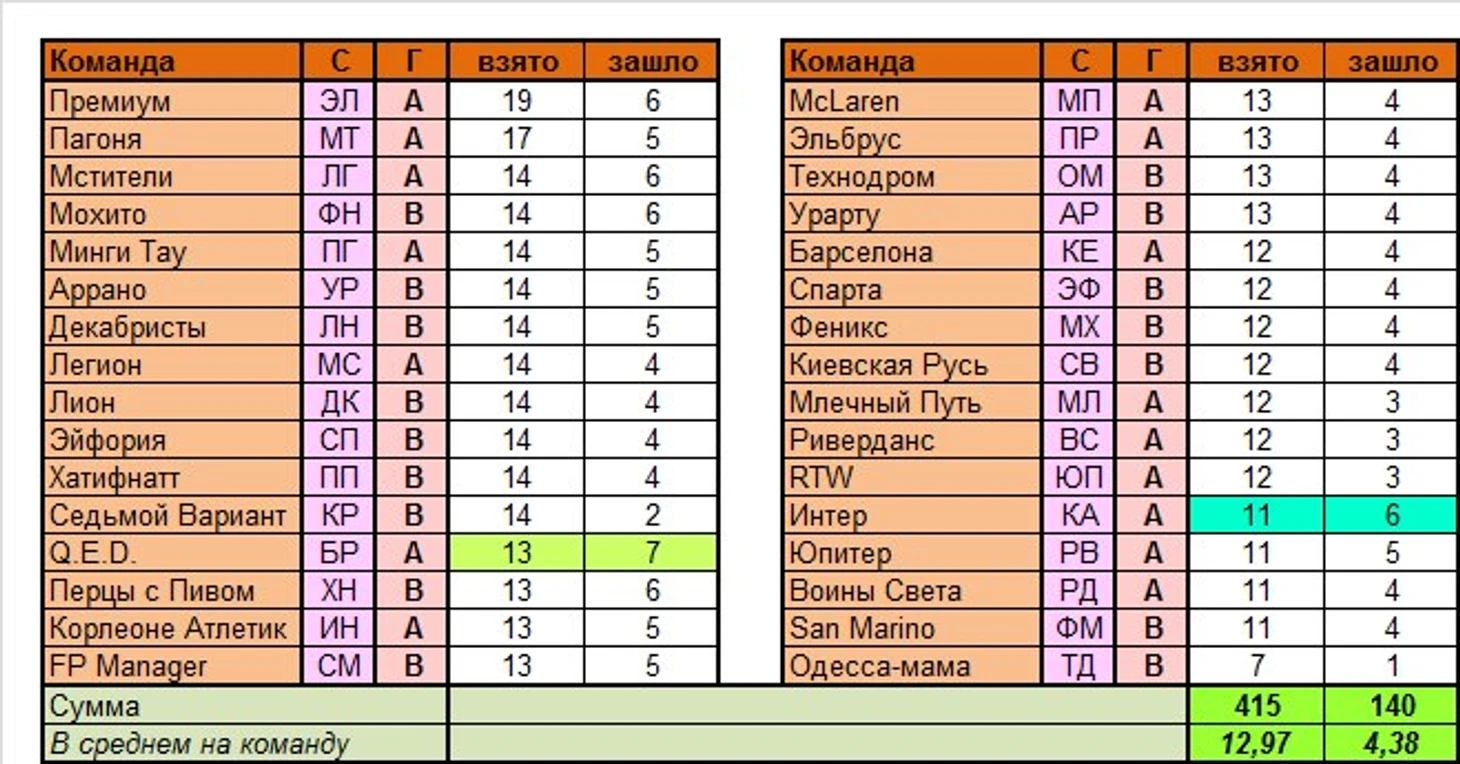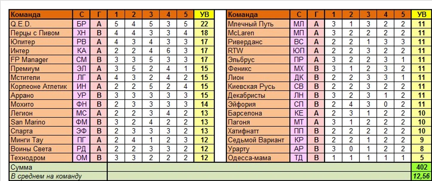Лучшая команда тура по сумме УВ в целом: Q.E.D. (22 варианта)