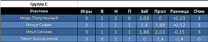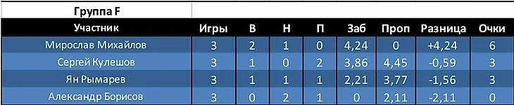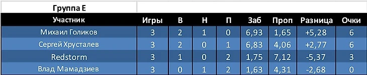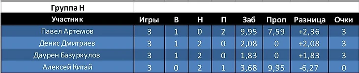 Открытие недели: Группа H. Павел Артемов. Игрок, который по итогам 2-х туров имел худший показатель на турнире по разнице и 0 в строке забитые. В итоге Павел вышел с первого места в группе.