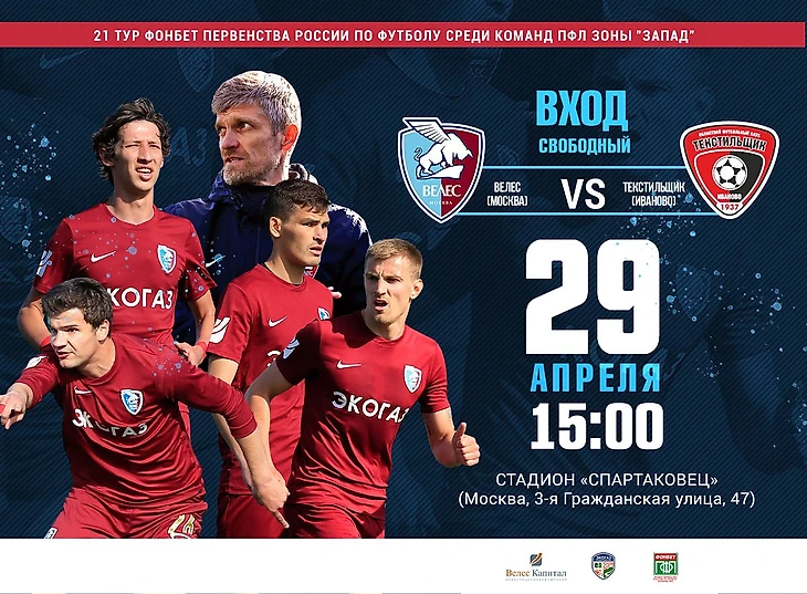 Весной Текстильщик выступает далеко не лучшим образом. Набрали всего 5 очков в 4 играх. Единственную победу, да и то с большим трудом, одержали над слабеньким ЦРФСО. Другое дело, Велес. Команда хоть и новичок в ПФЛ, но идёт к своей цели куда увереннее. Весной одержаны 3 победы в трёх играх. Обыграли даже Чертаново в гостях, а это дорогого стоит, ведь лидер зоны Запад сейчас ой как хорош. Таким образом, Велес по делу запрыгнул на 3-е место, обогнав в прошлом туре Текстильщик. Теперь дебютант ПФЛ полон желания удержать бронзовую ступень. Все предпосылки у клуба для этого имеются. Многое в борьбе за медали решит предстоящий матч.