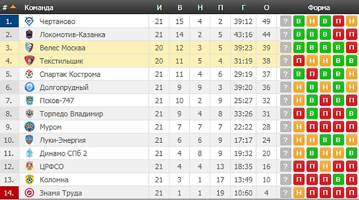 Турнирная таблица: