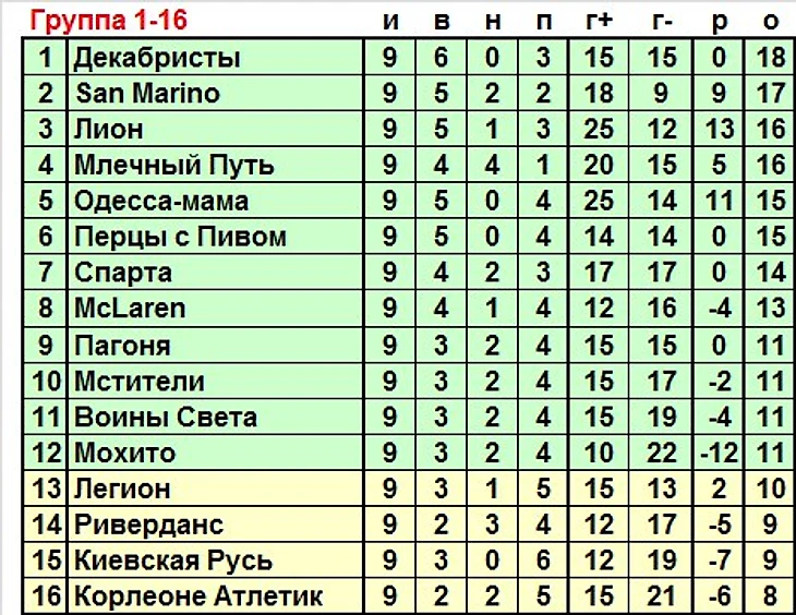 Млечный Путь - Спарта 2:2 (УВ 8-4 из 18)