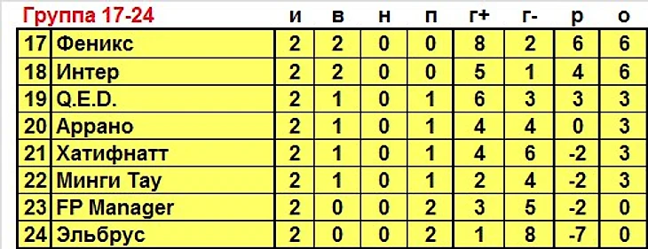 1. Дмитрий1987 (1-6-7-11-15-29-35) - Мерхаба (1-6-7-11-14-24-29) 1:0 (2)