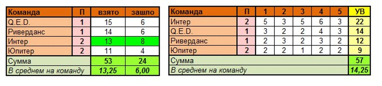 Определились финалисты текущего розыгрыша Кубка Ямато, ими стали команды Q.E.D. и Интер. Стадия полуфиналов далась им по-разному: "кеды" в упорной борьбе одолели Риверданс со счётом 3:1, и преимущество на всех победных линиях составило по 1 УВ, а Интер разгромил Юпитер 5:0 с разницей в 13 выбитых пунктов.