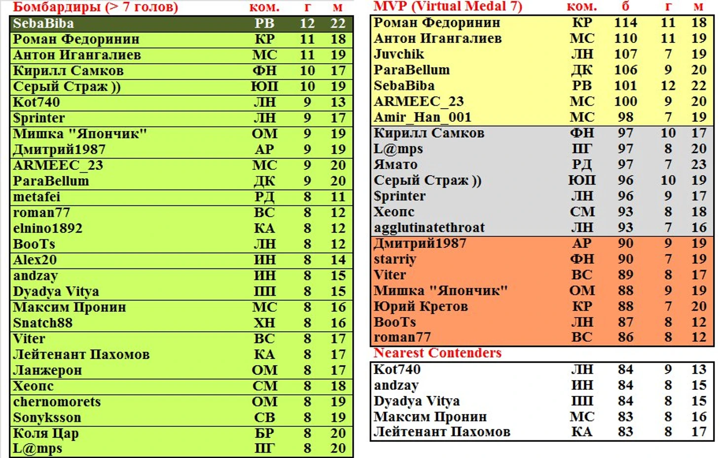Демонстрирую и расстановку в зачёте лучших бомбардиров сезона и верхушку личного рейтинга mvp: