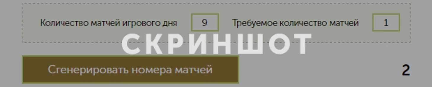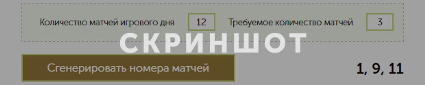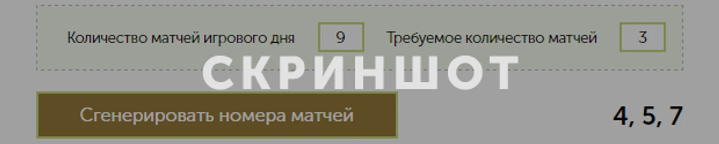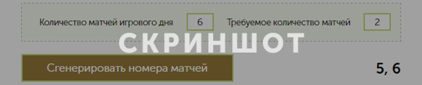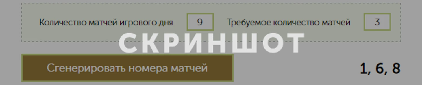 На выходе генератор выдаёт номер (номера) матчей на которые мы как-будто бы ставили. В том числе генератор был сделан, для того чтобы красиво оформить статью, подкрепив её скриншотами того, как я выбирал матчи.