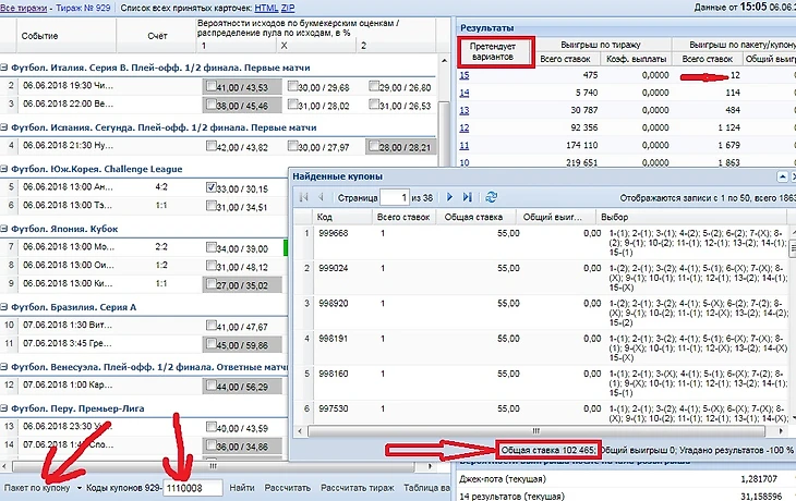 2) Номера купонов - это и есть доказательство, что я ставлю реальные деньги. Всё пробивается через Инфосервис ht tp://old.toto-info.co (убрать пробел) где в любой момент времени можно посмотреть что поставил человек, и на что он претендует по итогу(рассчитать, и сделать возможные страховки).