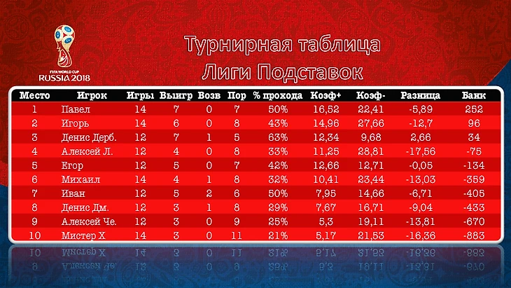 Лига Подставок на ЧМ-2018. 10-ый игровой день