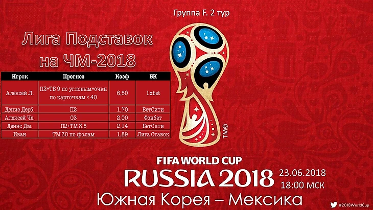 Ниже варианты ставок наших участников матч чемпионата мира по футболу - 2018: Южная Корея - Мексика.