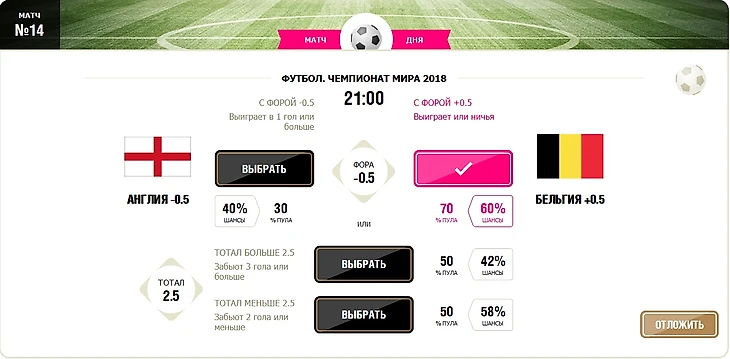 Тотошка интересна тем, что можно здесь ставить фактически на фору. Вот один из 15 сегодняшних матчей: в 21-00 по Мск встретятся Англия и Бельгия. Ставлю на то, что Бельгия как минимум не проиграет (тотал +0). Общий же тотал мне тут не важен - закрываю ТБ и ТМ (2,5).