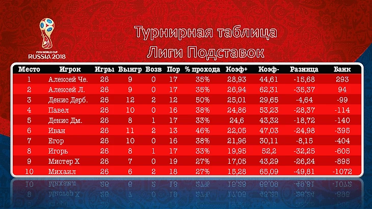 Лига Подставок на ЧМ-2018. 17-ый игровой день