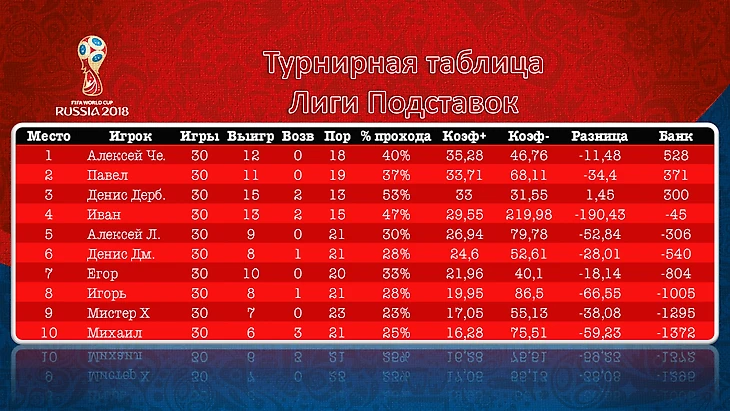 Лига Подставок на ЧМ-2018. 19-ый игровой день