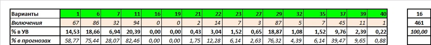 Сумма угаданных вариантов: 461 из 798 (57,77%)