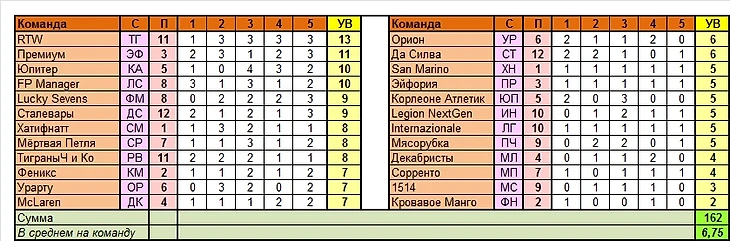 В завершение превью прилагаю расширенную таблицу-шахматку летнего турнира:
