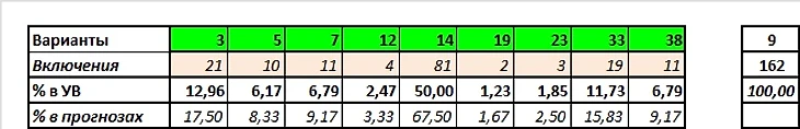 Сыграно вариантов: 9 (3-5-7-12-14-19-23-33-38)