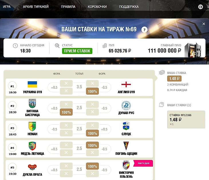 Несколько подробнее о ТОТО-15 в этом посте. Само вышеупомянутое ТОТО - ТУТ. Зарегистрировавшись по ссылке, можно получить приличный бонус на депозит (75% ! ). Не забудьте воспользоваться инструментом (friGate или Browsec) для обхода блокировок, если вы из России.