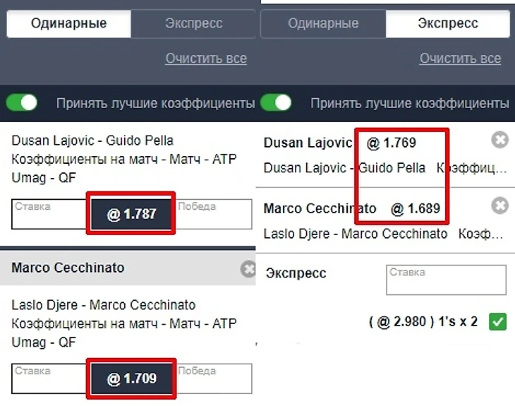 Экспрессы. У вас не получится впихнуть любой исход, который вы видите, в экспресс. У Pinnacle своя линия для экспресс-ставок, которая меньше, чем основная. Также здесь все коэффициенты ниже, чем для одиночных ставок, что делает экспрессы здесь менее интересными.