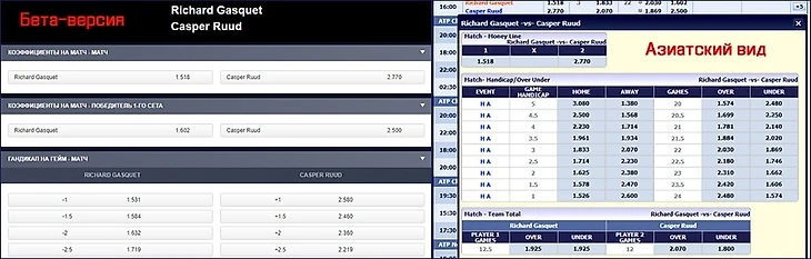 Прематч.А вот тут проблемка для искушённого 1хбетом игрока. Никаких будет ли тай-брейк, кол-во брейков, тотал 1-го сета и т.п. Даже чёт/нечёт тут не в почёте. Только П1/П2, тоталы и форы, только хардкор. На матчах ATP и WTA ещё есть индивидуальный тотал игроков, но лимиты на одну ставку там заметно меньше. На топовых матчах добавляются дополнительные виды ставок, но не сильно. Единственно, что стоит отметить, что на чемпионат мира по футболу добавляли почти по 60 видов ставок. Того же очень популярного у игроков на футбол «обе забьют» обычно нет.